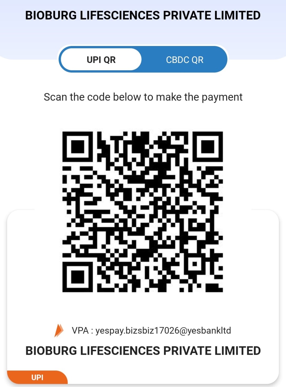 UPI ID - yespay.bizsbiz17026@yesbankltd